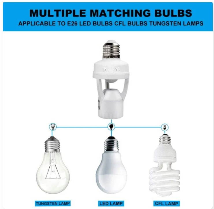 1. Intelligent E27 lamp holder converter, built-in PIR human body induction sensor, automatically senses human activities and lights up lamps, improving the convenience of life.
